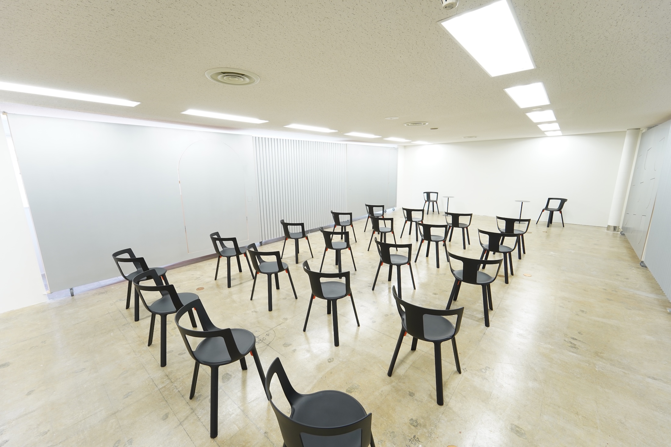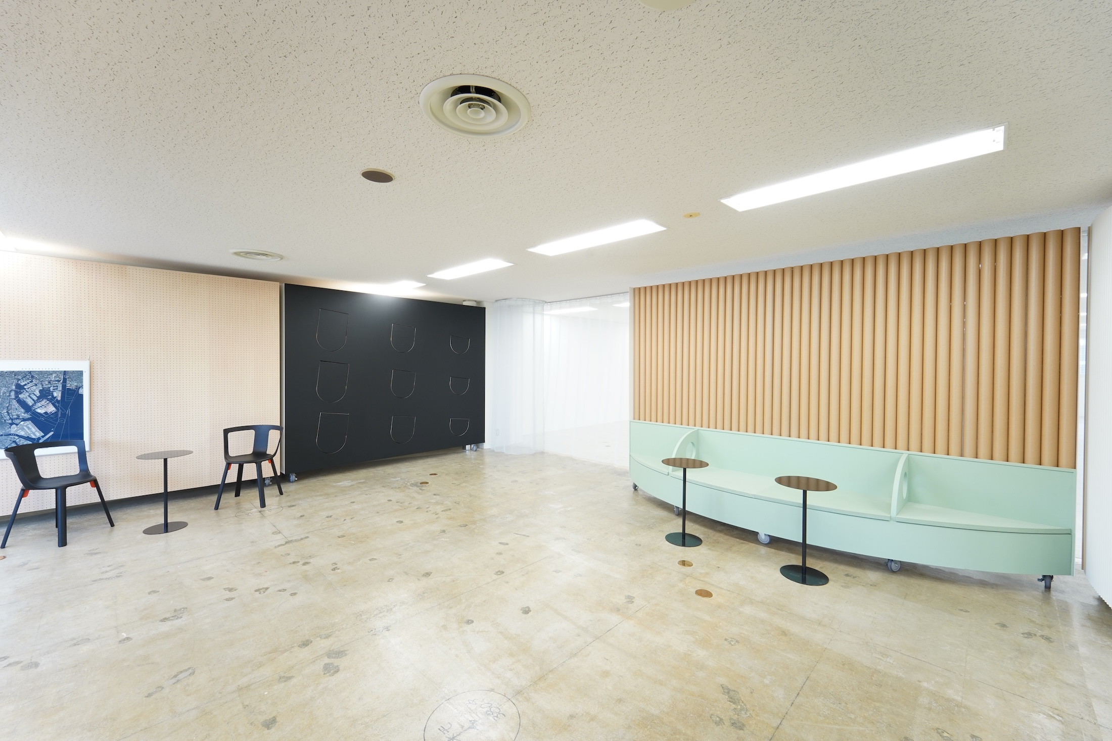 シンプルな空間は、ときに寛ぎのラウンジ、ときにセミナー会場へとその姿形を変えていきます。