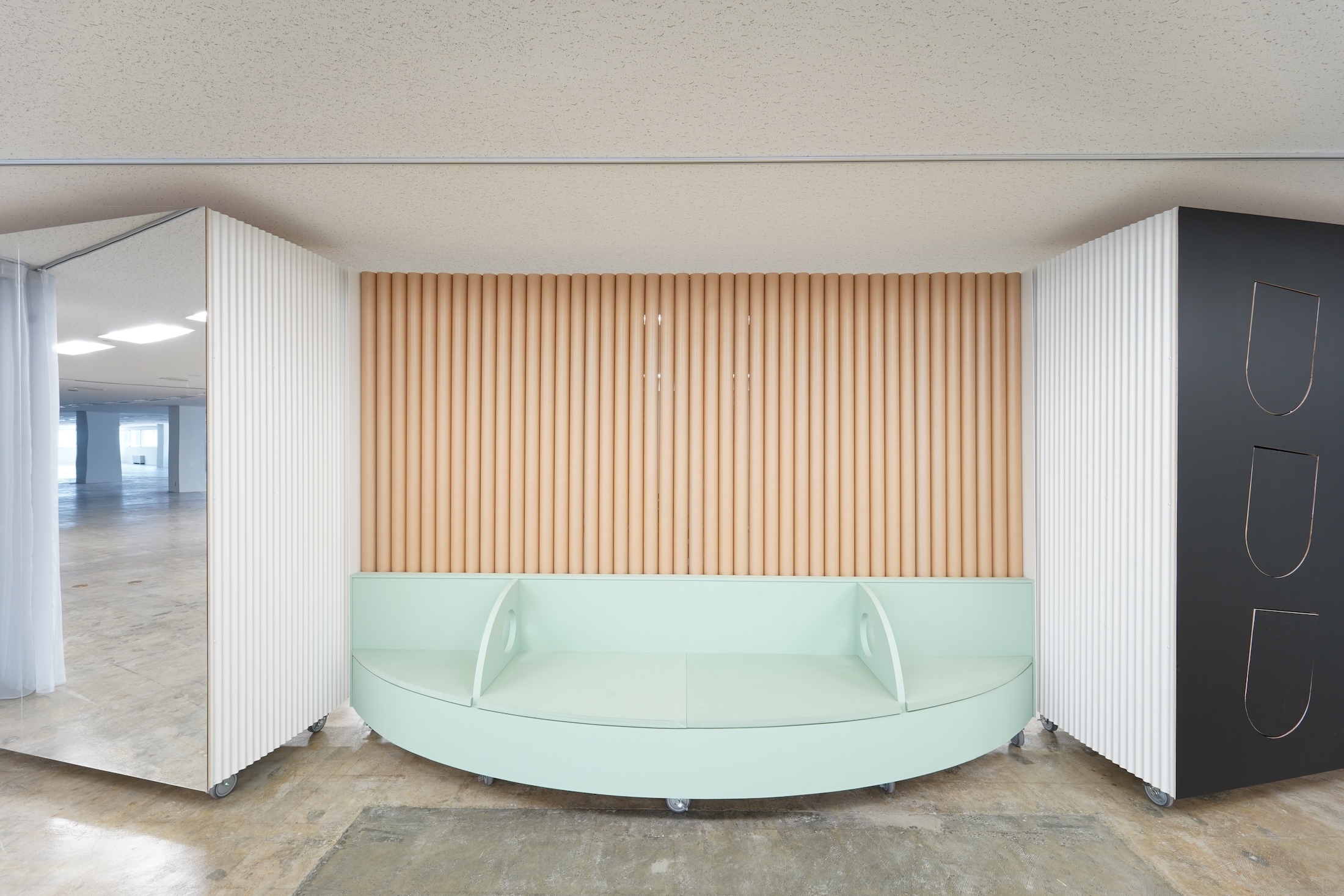 空白が、可変な表面に面するとき、人々が新しい空間と対面します。